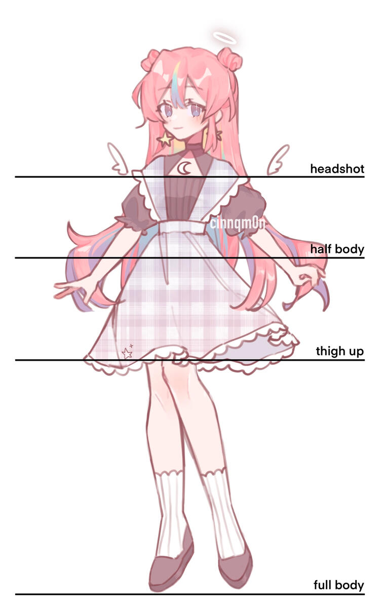 • please note that if i feel my skill is inadequate for pose requested, it may be refused.more than 1 characters may be commissioned in the same drawing, but the additional price per character will go by the same terms as above.Size Chart: